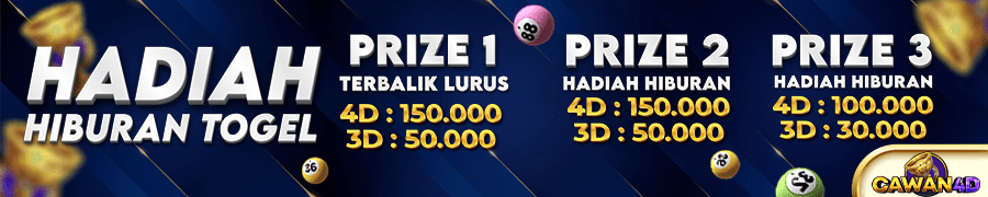 - Hadiah prize 3 : 4D = Rp. 100.000,- / 3D = Rp. 30.000,-